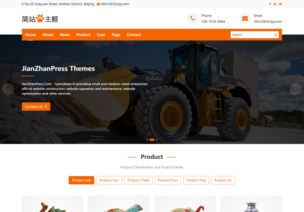 主题支持产品多图展示,并可自定义显示产品详细参数,适合机械设备等复杂产品的展示。此外,还提供多种产品页面布局,满足不同展示需求。