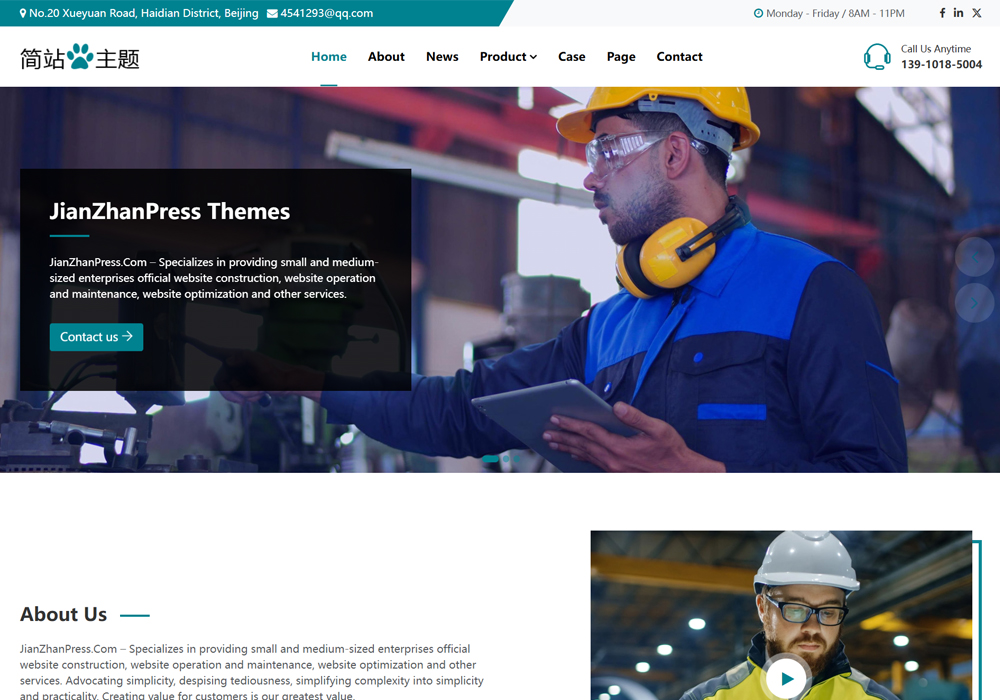Simplify主题采用简洁明了的设计风格,适合外贸企业展示产品和服务,能够帮助用户快速构建清晰、高效的网站。