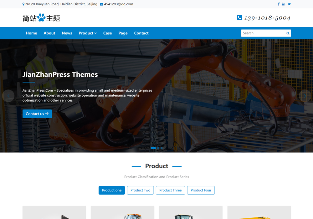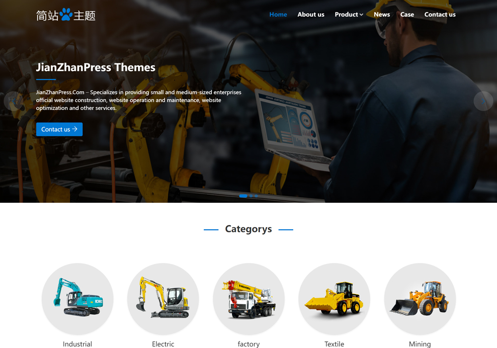 蓝色风格wordpress主题,适合装备制造、工业设备、机电机械等公司建外贸独立站使用。